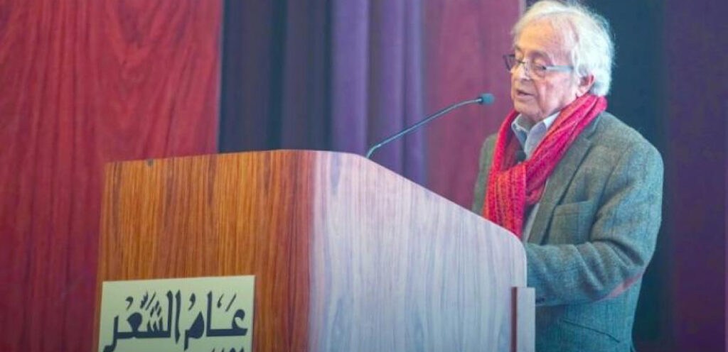 واستكمل: «من اليسار، فإن محمد مهدي الجواهري المسمى شاعر العرب الأكبر، لو ناقشنا لغته الشعرية، لرأينا أن الجواهري استعاد البلاغة العربية القديمة، بلاغة المديح والهجاء، وكساها شكلاً يسارياً، وحين المقارنة بينه وبين الشاعر مظفر النواب، سأكون من جهة النواب».