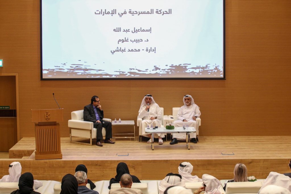 جاء ذلك خلال ندوة حوارية تحت عنوان “الحركة المسرحية في الإمارات” استضافت كلّاً من إسماعيل عبدالله، رئيس الهيئة العربية للمسرح، والممثل الدكتور حبيب غلوم، اللذين ناقشا المراحل التاريخية التي أوصلت المسرح الإماراتي لما هو عليه اليوم، وتحدثوا عن الرموز والأسماء التي نهضت وساهمت في الارتقاء به وتركت بصمة على خشبته، إلى جانب مناقشة أسباب الضعف والمعوقات التي مرّ بها ووضع الحلول الناجحة للنهوض بواقع المسرح مستقبلاً.