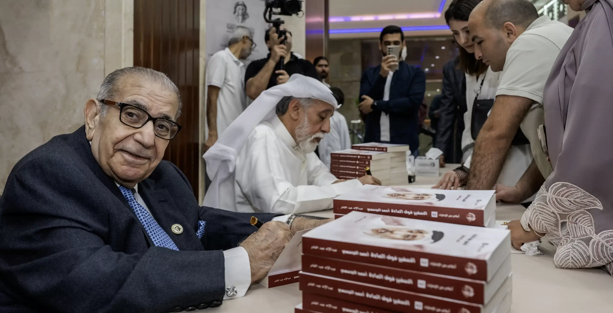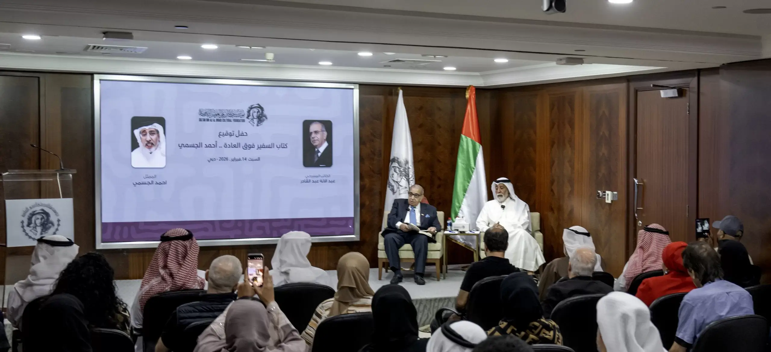 ثم وقع كل من عبد الإله عبد القادر وأحمد الجسمي نسخاً من كتاب “السفير فوق العادة” للجمهور الكبير الذي حرص على حضور الحدث الثقافي المتميز.