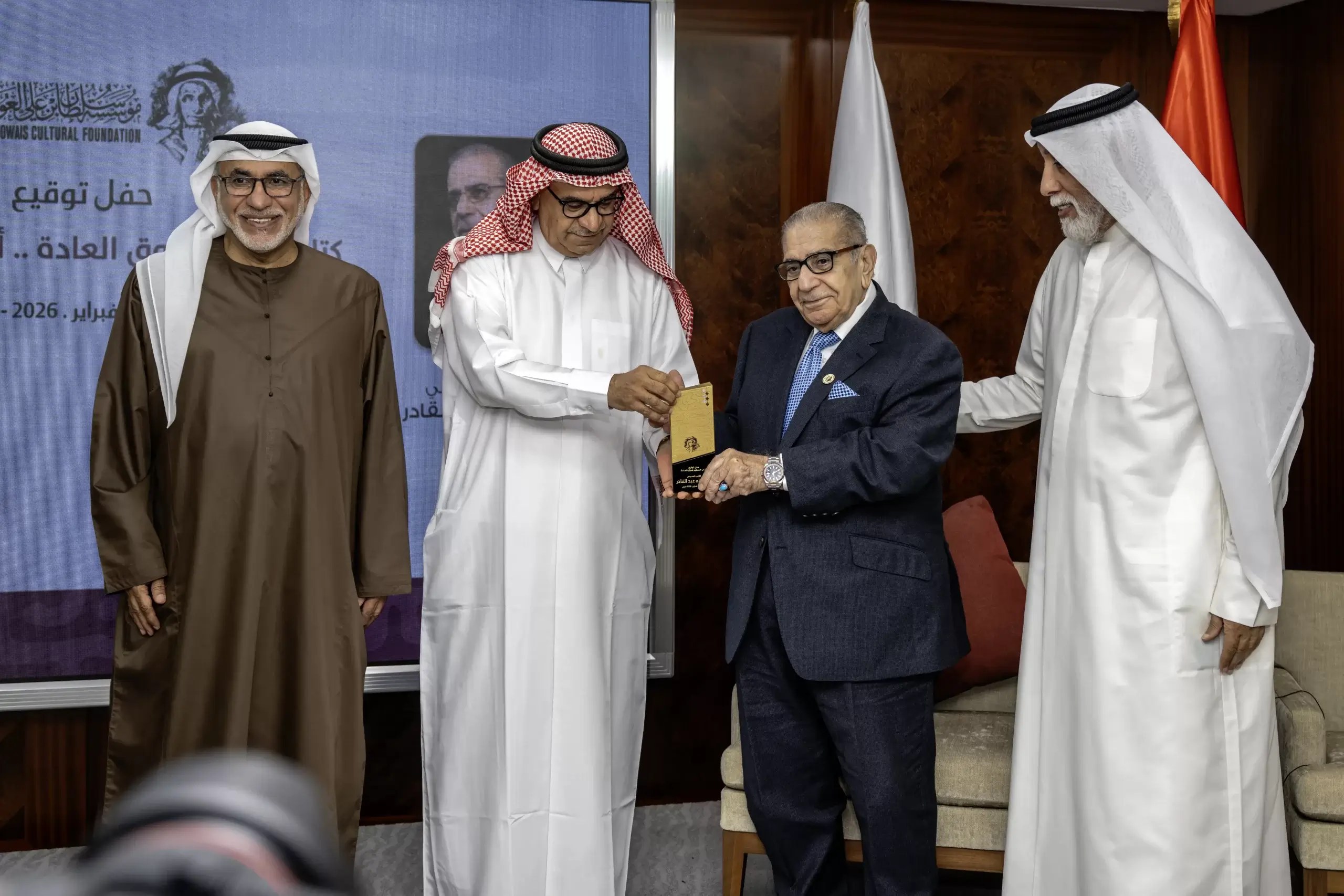 كما شهد الحدث تكريم كل من عبد الإله عبد القادر وأحمد الجسمي ومحمد العامري حيث قدم لهم الأمين العام لمؤسسة سلطان بن علي العويس الثقافية الدروع التذكارية.