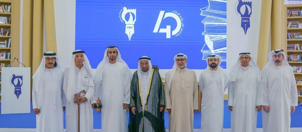القاسمي عضو المجلس الأعلى حاكم الشارقة، الرئيس الفخري لاتحاد كتاب وأدباء الإمارات، مساء يوم السبت 25 مايو 2024 احتفال الاتحاد بمناسبة مرور 40 عاماً على تأسيسه، وذلك في مقر هيئة الشارقة للكتاب.